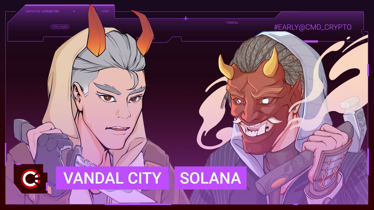 Город вандалов — проект на блокчейне Solana, разработкой которого занимается студия Celestial X Labs, для которых это пилотная коллекция. Помимо довольно симпатичных джипегов, Vandals City планируют устроить «самое большое ограбление в сети» — игру, в рамках которой команды из двух человек (холдеров NFT) должны будут найти адрес 12 кошельков, на которых хранится определённое количество $SOL, - хранилищ. Также будут стейкинг их собственного токена $VAULT, DAO, мерч и прочие «классические» элементы роадмапа.