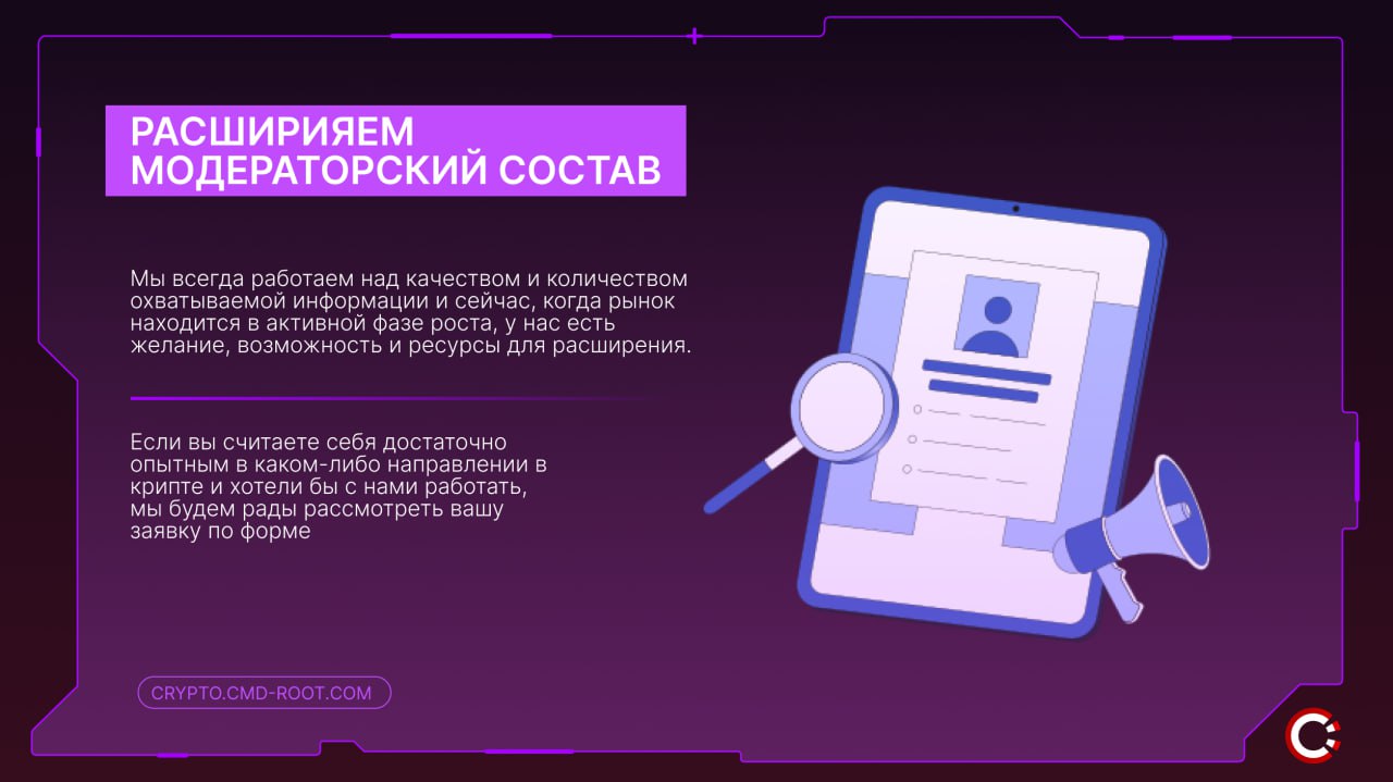 Поэтому, если вы считаете себя достаточно опытным в каком-либо направлении в крипте и хотели бы с нами работать, мы будем рады рассмотреть вашу заявку по форме.