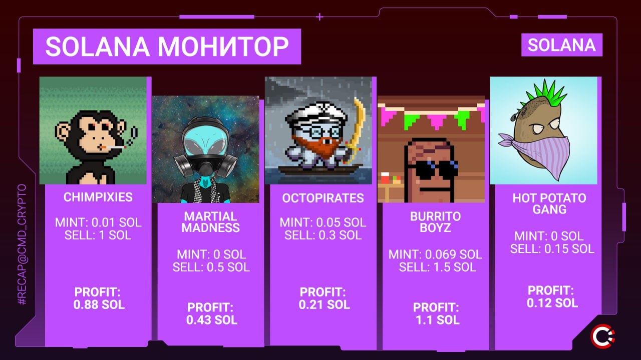 Практически каждый дроп можно было взять руками в количестве нескольких штук на кошелёк, поэтому профит можно умножать в зависимости от вашего риска. Весь профит указан на 1 NFT за вычетом комиссий за минт и продажу.