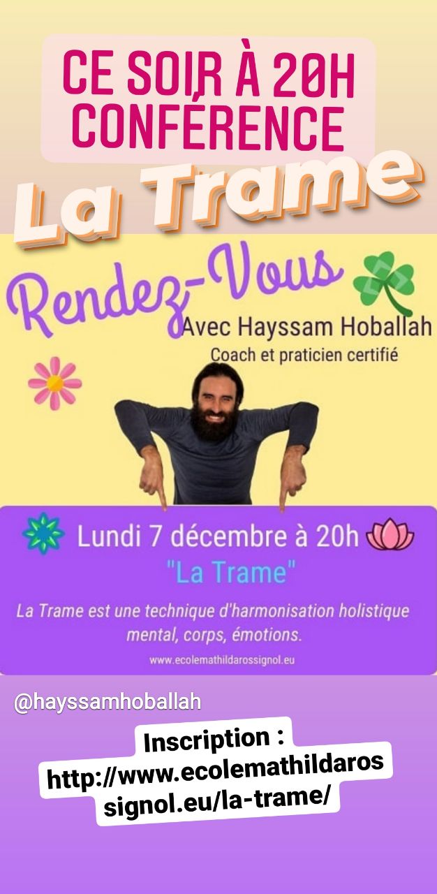 Ce sera ma première conférence en ligne sur la Trame, cette remarquable technique d'harmonisation holistique mental, corps, émotions dont je suis praticien certifié depuis septembre 2019.