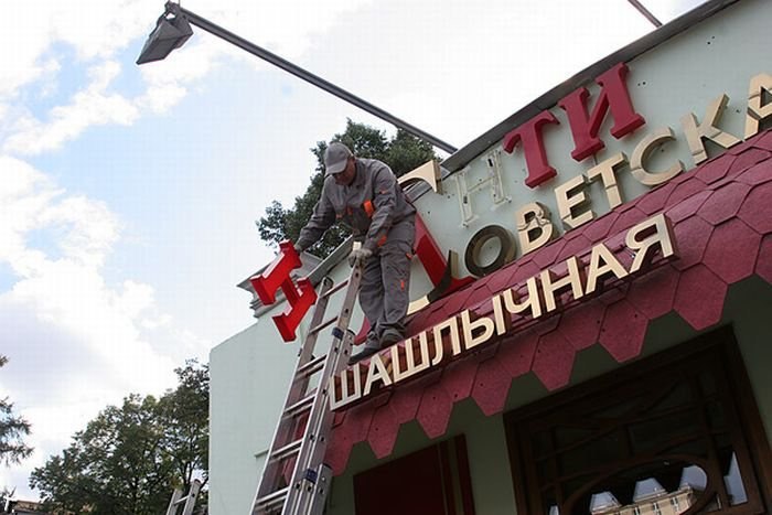 Напротив московской гостиницы «Советская» долгое время работала шашлычная, которую еще в СССР называли «антисоветской». Уже в нулевые владельцы помещения решили возродить шашлычную — и шуточное название стало официальным. Так безобидный городской фольклор породил один из самых громких скандалов конца нулевых.