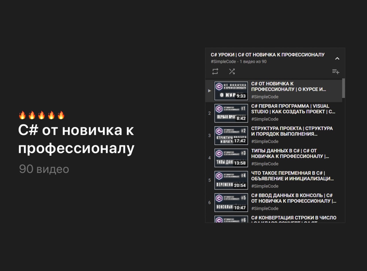 По просьбе из прошлой подборки сегодня публикуем видео по языку C#. В данном видеокурсе 90 видео, поэтому он будет разделён на несколько частей.