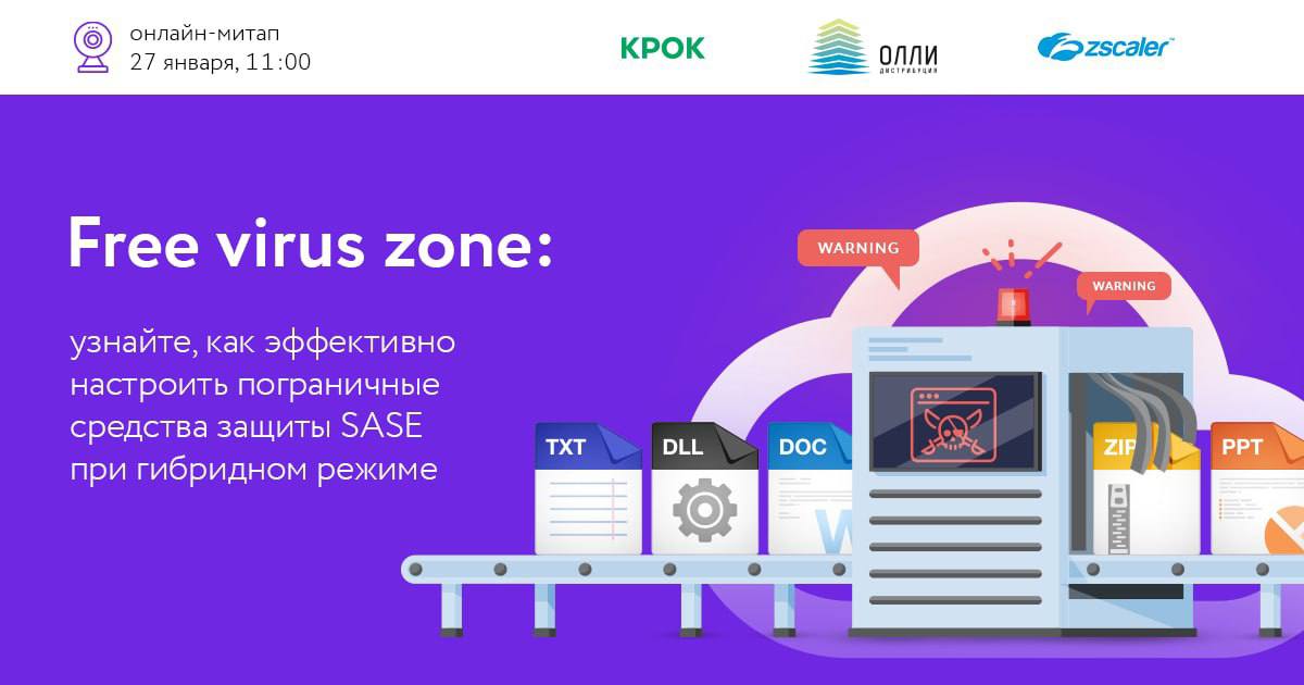 ▫️ 27.01 чт | 11:00 мск | Онлайн митап КРОК | Free virus zone: узнайте, как эффективно настроить пограничные средства защиты SASE при гибридном режиме | Подробности и регистрация