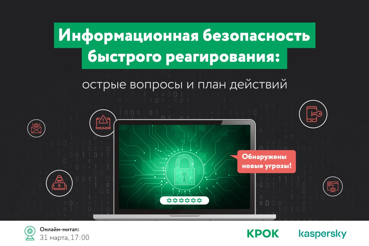 Онлайн-квартирник с экспертами ИБ КРОК и Kasperskiy «Информационная безопасность быстрого реагирования: острые вопросы и план действий»