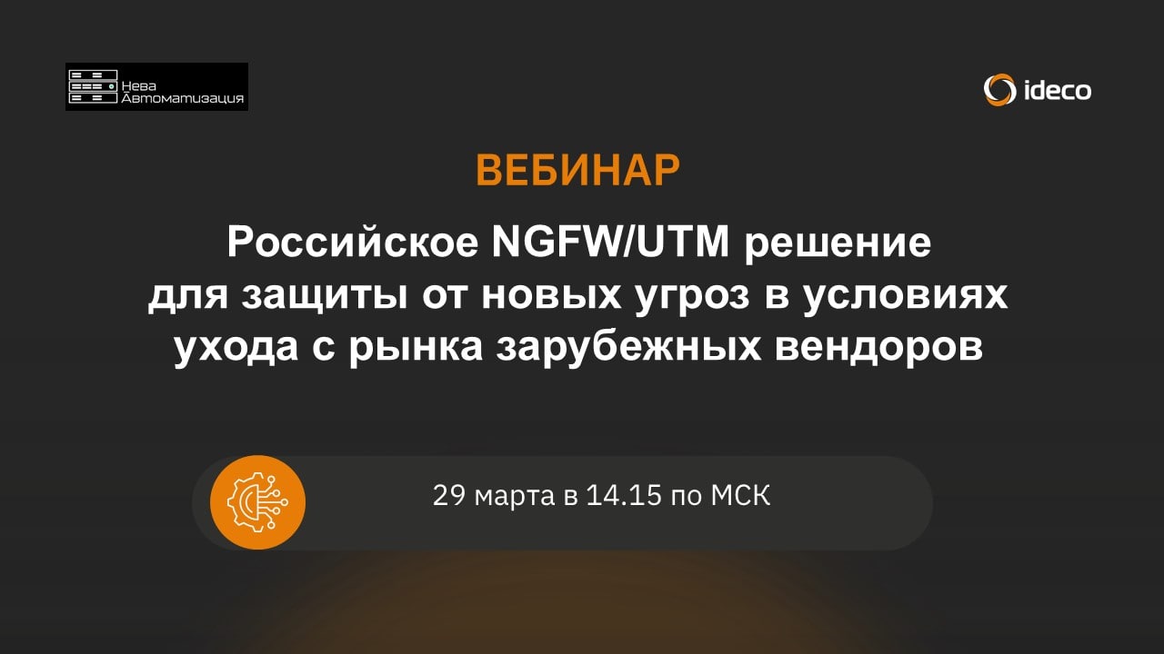 Приглашаем вас на вебинар «Российское NGFW/UTM решение для защиты от новых угроз в условиях ухода с рынка зарубежных вендоров» от компании «Айдеко»