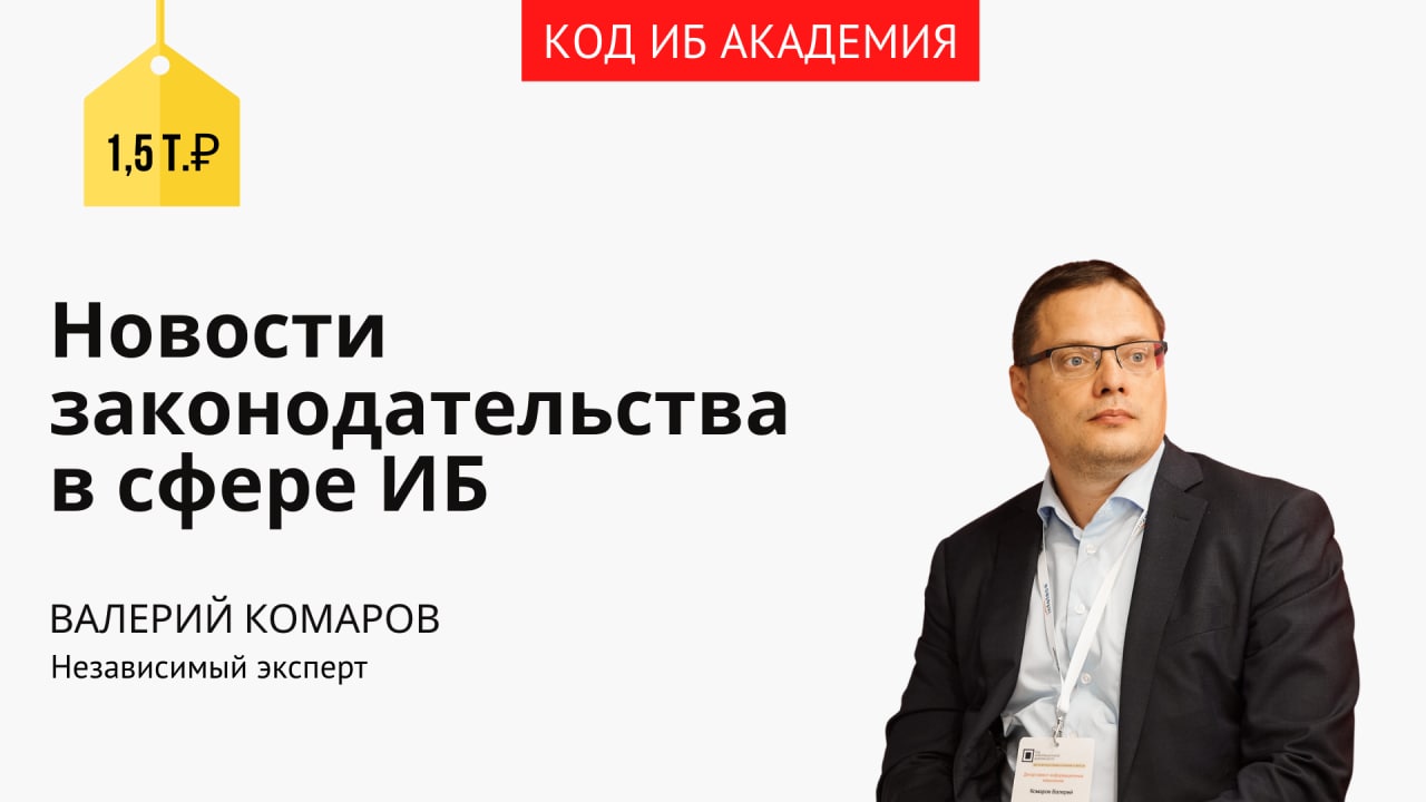 ▫️ 12.04 вт | 12:00 мск | Код ИБ Академия | Мастер-класс с Валерием Комаровым Новости законодательства в сфере ИБ