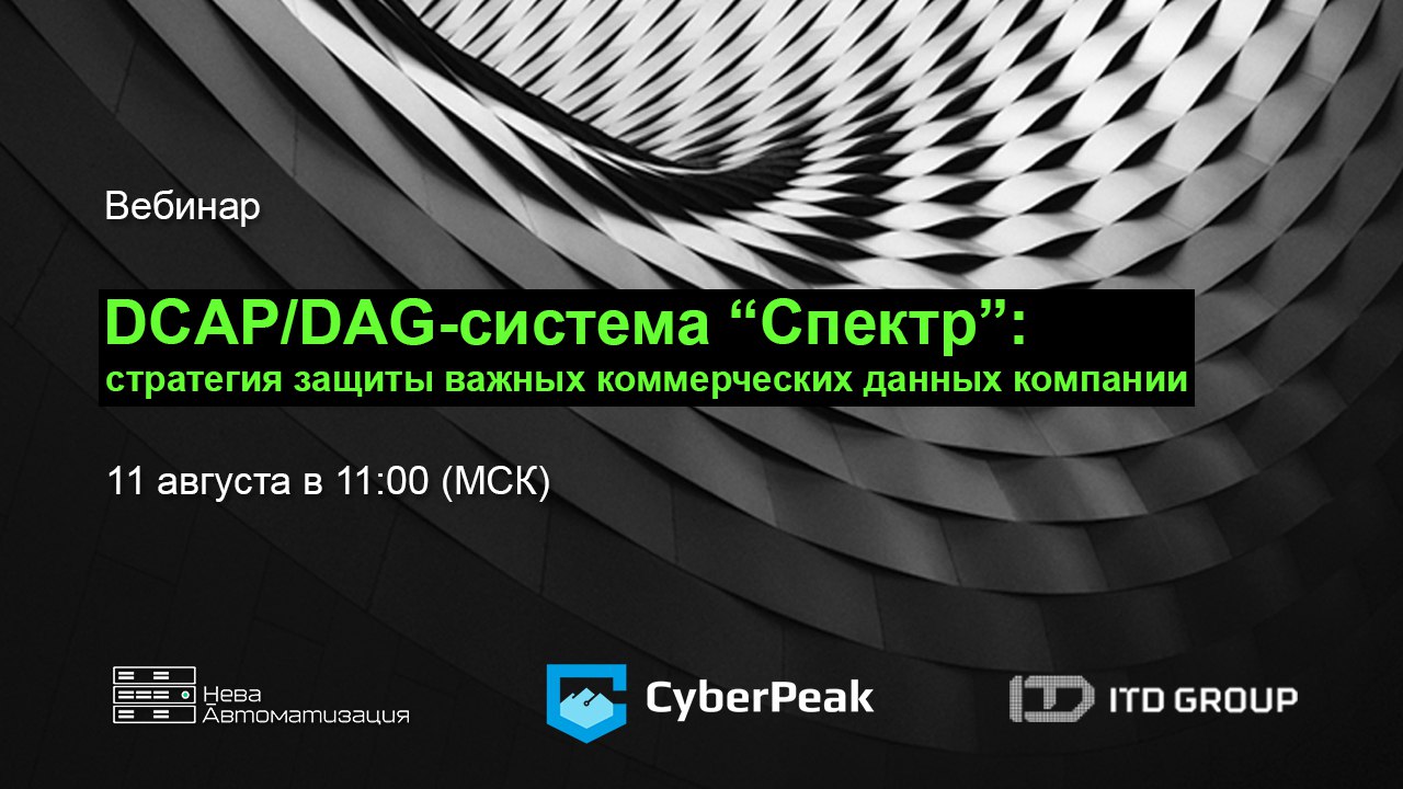 Компания "Сайберпик", дистрибьютор ITD GROUP совместно с системным интегратором “Нева-Автоматизация” расскажут, как российская DCAP/DAG “Спектр” помогает выстраивать стратегию защиты коммерческих данных.