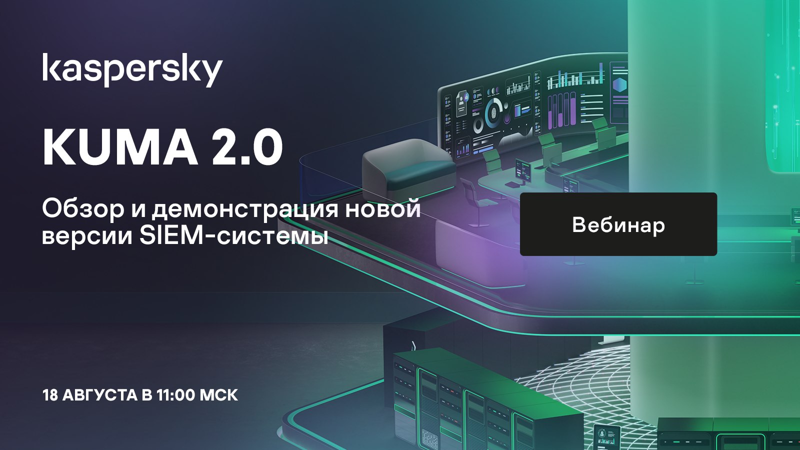 ● Вебинар | Лаборатория Касперского. KUMA 2.0: обзор и демонстрация новой версии SIEM-системы | 18.08