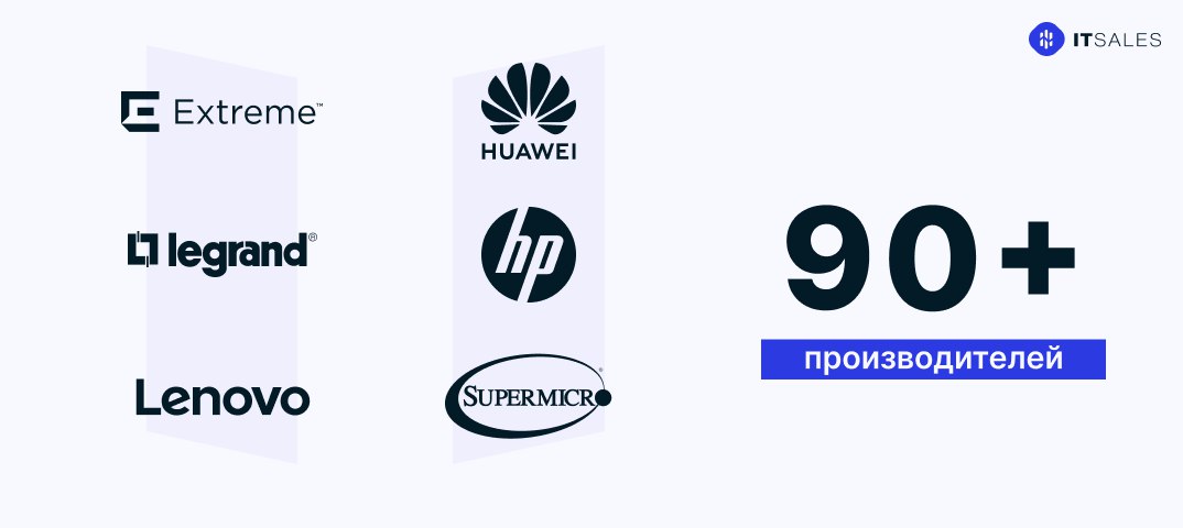 Более 190 брендов представлены в каталоге IT Sales, среди которых HP, Extreme, Cisco, Lenovo, Supermicro, Huawei, H3C и многие другие.