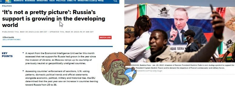 Успех Москвы также связан с российской пропагандой. Как заявила CNBC директор EIU по глобальному прогнозированию Агата Демарес, в развивающихся странах она «работает чрезвычайно хорошо».