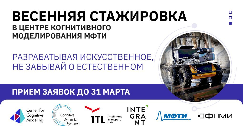 Center for Cognitive Modeling pinned «🔥 — Объявляем набор на весеннюю стажировку! Оплачиваемая стажировка предполагает работу над прикладными или фундаментальными проектами в составе опытной команды. Стажировка будет вестись по нескольким направлениям, в областях: — Интеллектуального управления…»