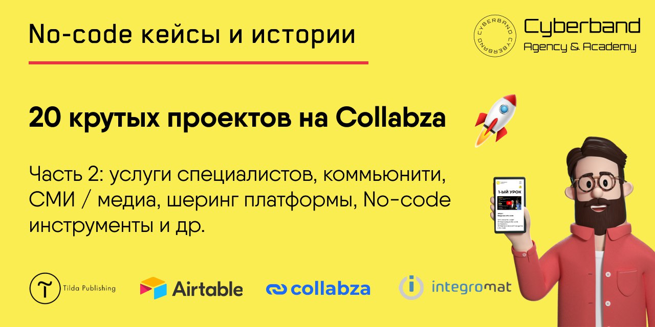 🏆 20 крутых проектов на Collabza. Часть 2: услуги специалистов, коммьюнити, медиа, шеринг платформы, No-code инструменты.