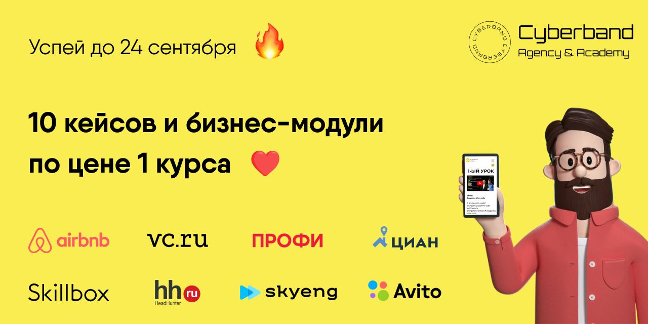 Друзья, привет! За лето у нас произошло масштабное обновление cyberband.academy: +4 кейса, +1 платформа, +бизнес-модуль, +3 спикера. Теперь в Академии мы собираем целых 10 известных сервисов, полностью пошагово от 0 и до запуска.
