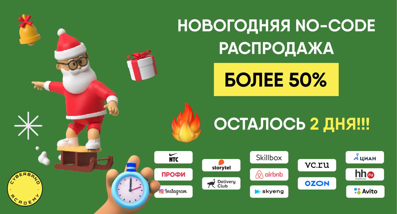 Мы на финише Новогодней распродажи в No-code Академии Cyberband. Режем цены больше 50% на все существующие и новые курсы. И наше ТОП предложение: 🔥 6 курсов по цене 1 + 14 кейсов при покупке «Абонемента навсегда»!!!