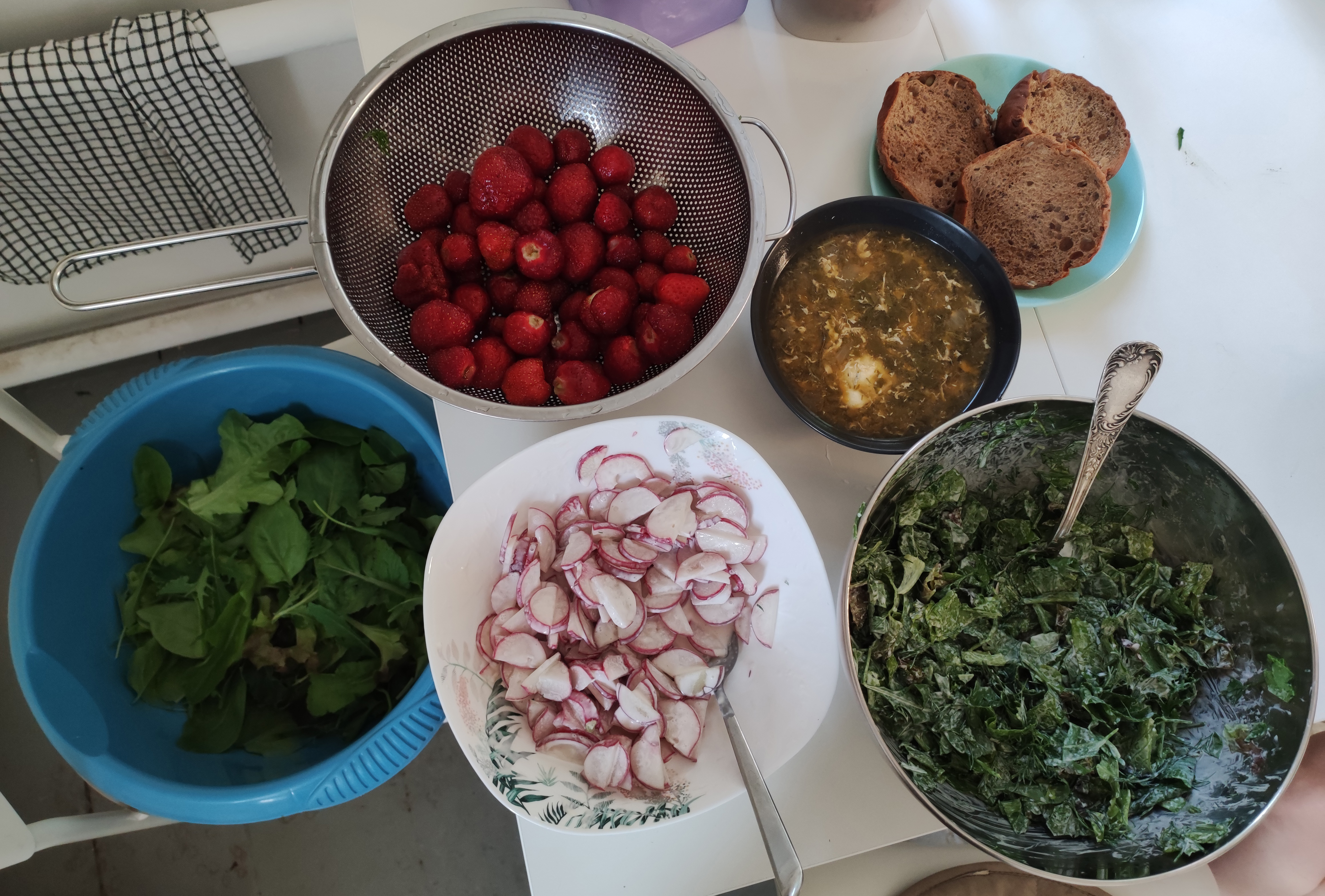 Редиска уже размером с арбуз, поглощать зелень не успеваем. Вчера посадили десятки кабачков и тыкв (по двум уважительным причинам, о которых сообщим в ближайшее время).