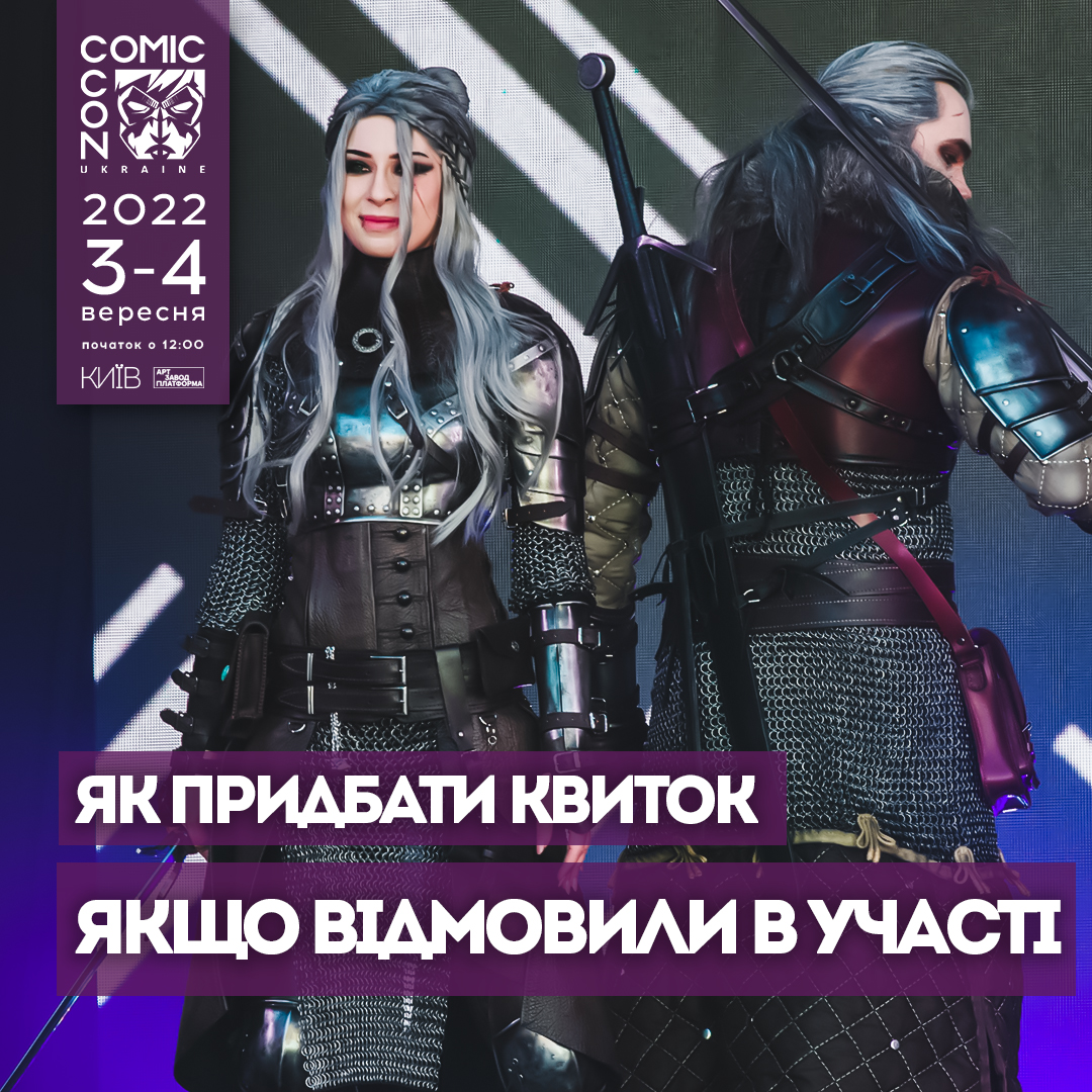 💜 Тож хвилюватися не варто! Якщо ми розпродамо всі квитки на момент скасування вашої заявки, ви однаково зможете потрапити на Comic Con Ukraine 2022.