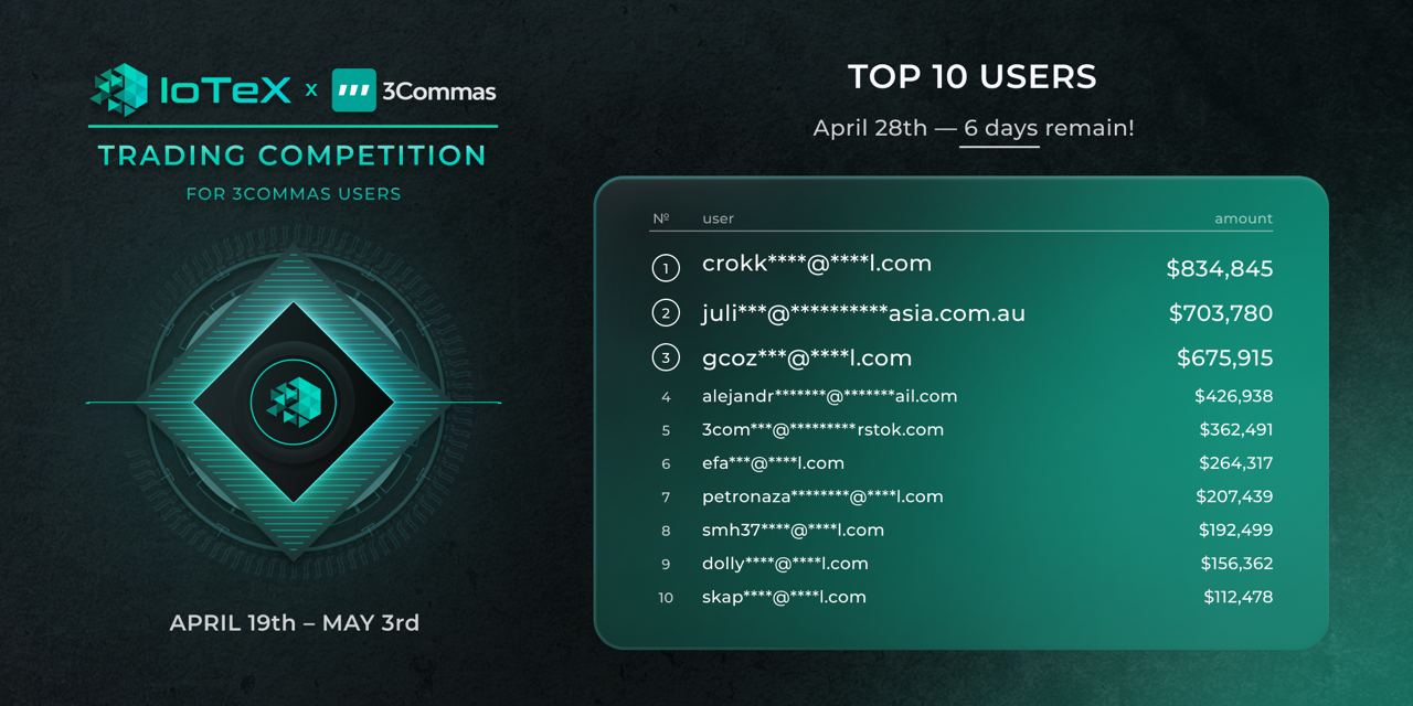 Just 2 days into our IoTeX & 3Commas contest and our users are already showing phenomenal results!