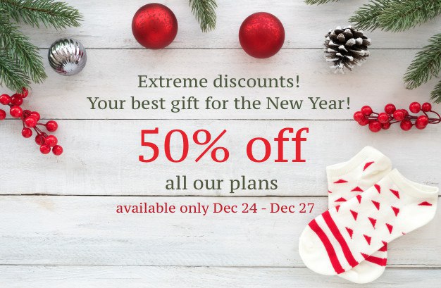 * The 50% offer is valid from Jan1 to Jan 3 inclusive, for an annual plan.