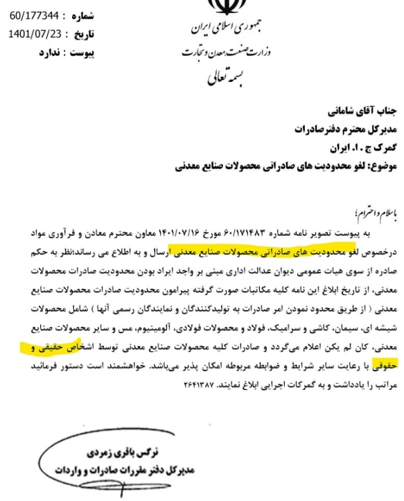 1- بر اساس حکم اخیر دیوان عدالت اداری، صادرات برای افراد حقیقی و حقوقی مجاز شده است