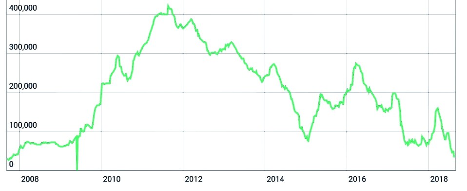 #سرب نیز وضعیت خوبی دارد و در بورس لندن 1.15%+↖️ و شانگهای 2.76%+⬆️ جهش دارد ... موجودی انبارهای سرب LME طی سال 2018 تا به امروز کاهش 11.8%-🔻 دارد و بازار چین و البته هند شاهد محدودیت عرضه است