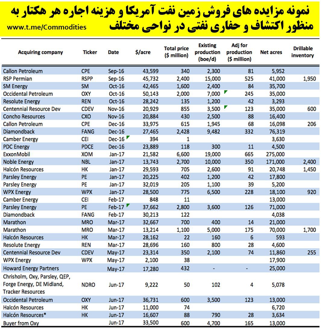 چشم انداز رشد قیمت نفت باعث شده تا شرکتهای نفتی برای حق اکتشاف و حفاری در ناحیه Permian تگزاس این هفته رقم باورنکردنی 95001$ در هر هکتار را پرداخت کنند🤔