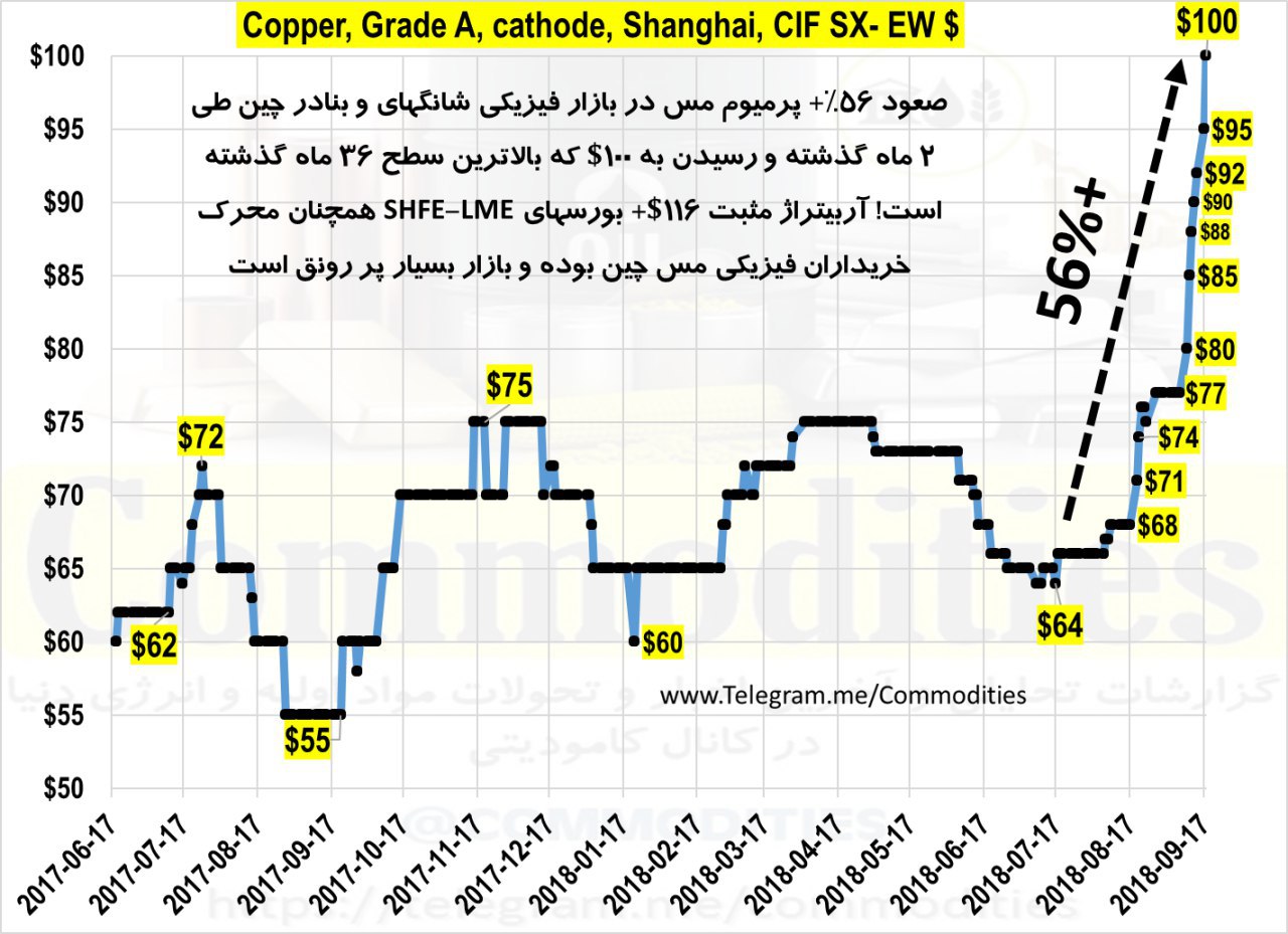 👈فروشندگان مس در چین برای تحویل کالای فیزیکی فقط پول نقد دریافت میکنند و برای آن هم تقاضای 112$+ پرمیوم بروی بورس شانگهای میشود! بازارهای آسیایی به تبع چین، شاهد رشد پرمیوم هستند و در اروپا فعالان بازار به دنبال افزایش پرمیوم بندر روتردام هلند هستند