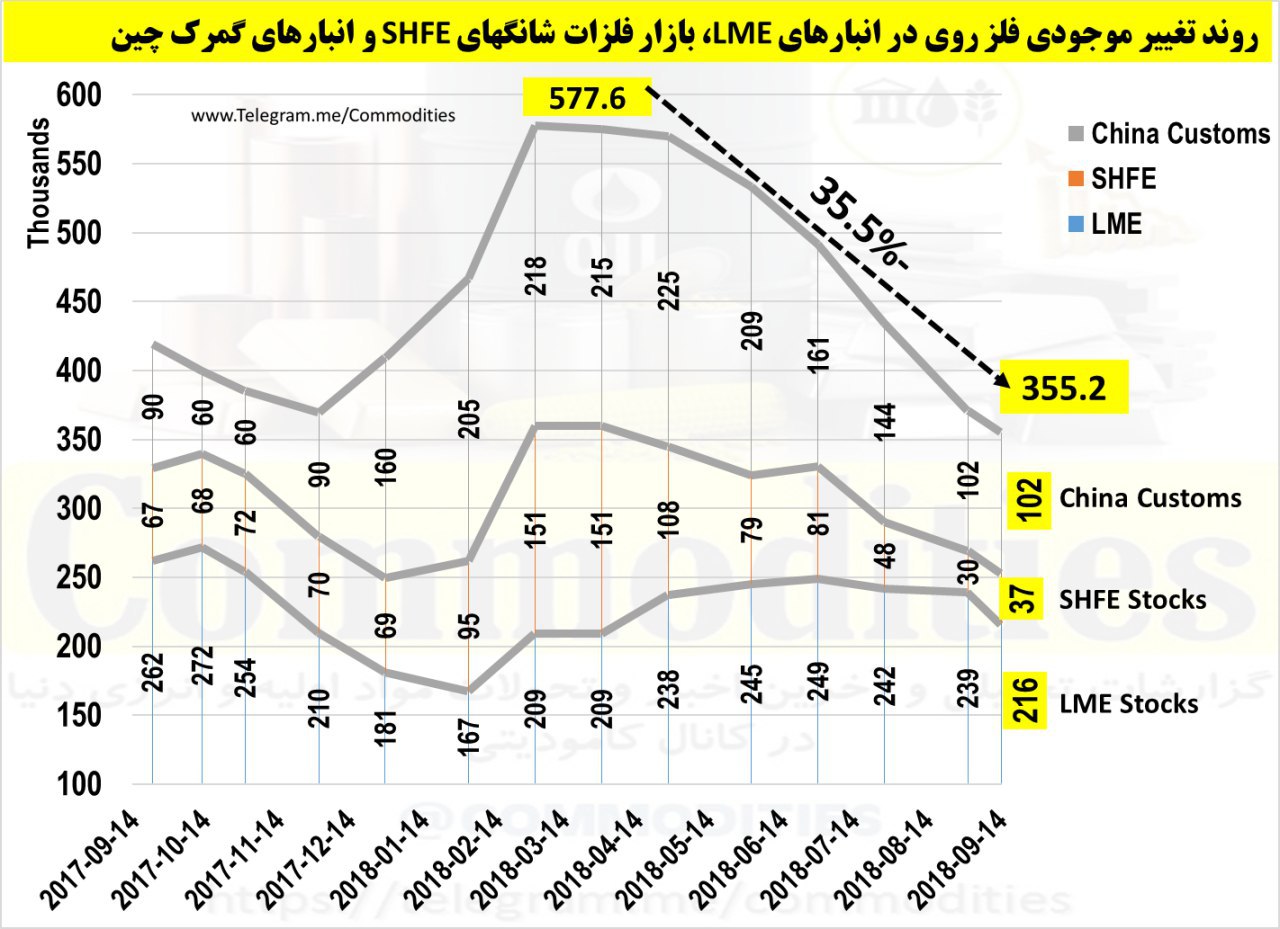 دلایل: #آربیتراژ مثبت LME-SHFE +افت تولید اسملترهای روی چین + موجودی پایین انبار