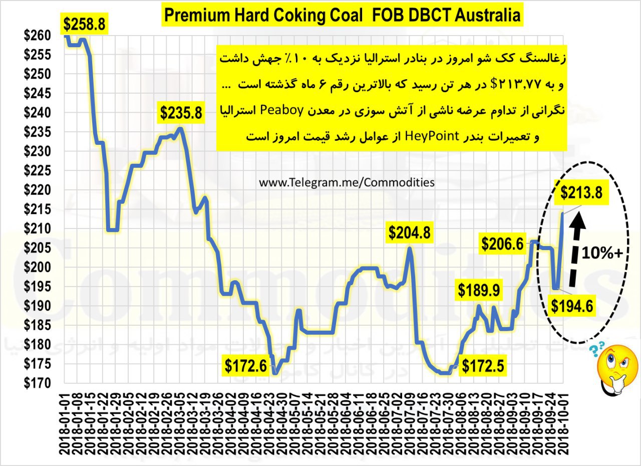قیمت زغالسنگ کک شو در بنادر استرالیا امروز 9.9%+ پرواز کرد و به رکورد 6 ماهه قیمت 213.8$ در هر تن رسید ... محرکهای بازار امروز: