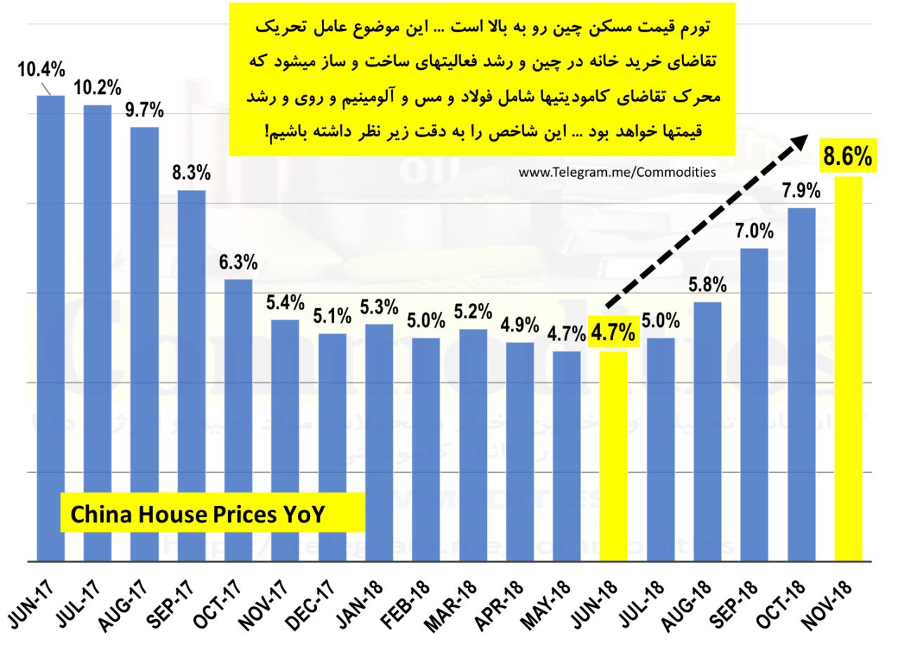 بعنوان نمونه شاخص #تورم مسکن چین در ماه اکتبر رقم 8.6%+↖️ را نشان میدهد که نسبت به 7.9% ماه قبل آن بهبود یافته و این موضوع میتواند انگیزه چینیها برای خرید مسکن و تقاضا برای کامودیتیها را افزایش دهد👍