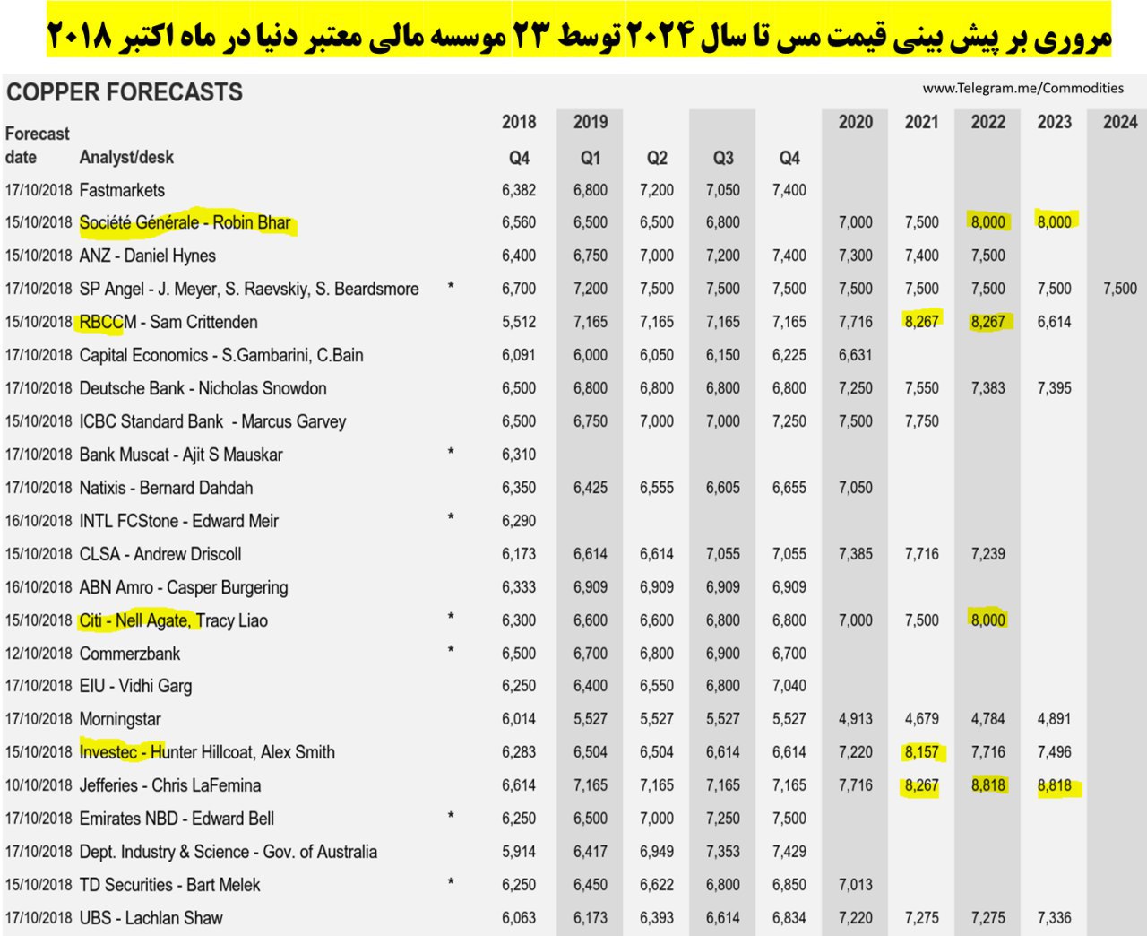 #مس روند قیمتها تا سال 2024 توسط 23 موسسه مالی معتبر
