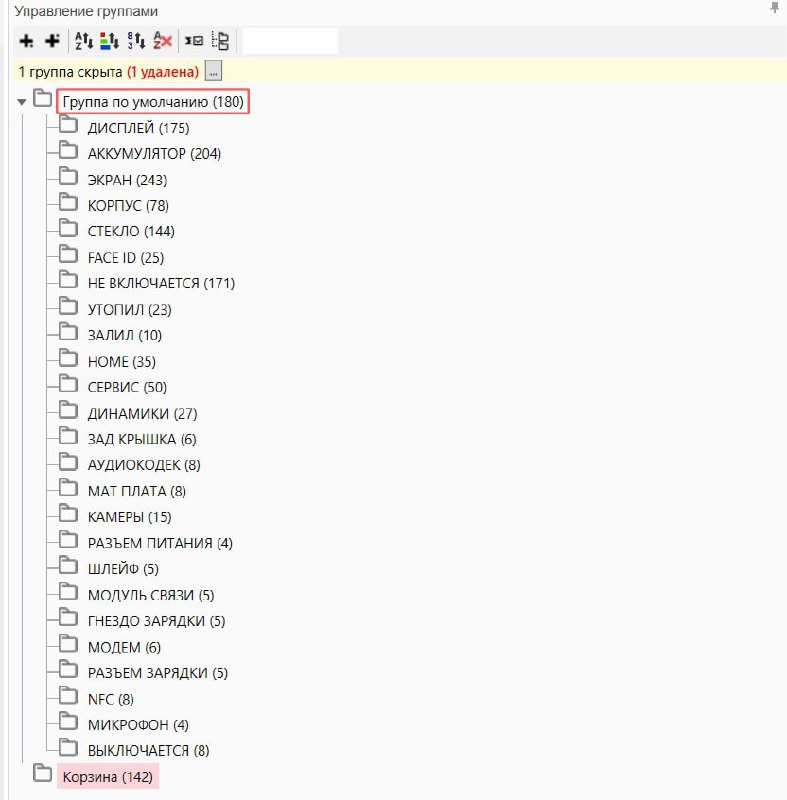 4) Группируем. Я выбрала группировку по проблеме, а затем внутри буду распределять по моделям айфонов. Преимущество для меня в том, что мне будет очень удобно писать объявления в коммандере.