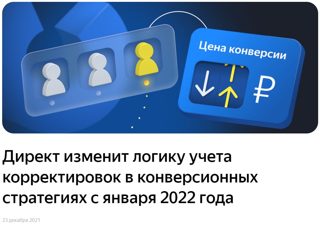 Ещё одно обновление в Яндекс.Директ: теперь корректировки ставок будут влиять на цену конверсии в автоматических стратегиях