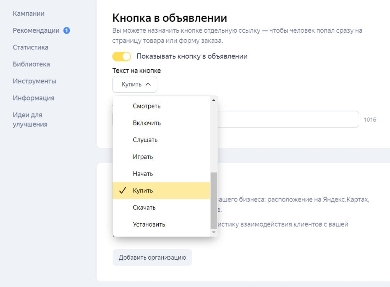 Говорят, в кампаниях РСЯ появилась дополнительная кнопка в объявлениях, на которую можно назначить ссылку, например, на товар. Посмотрела в своих аккаунтах — пока ничего. У вас появилось?