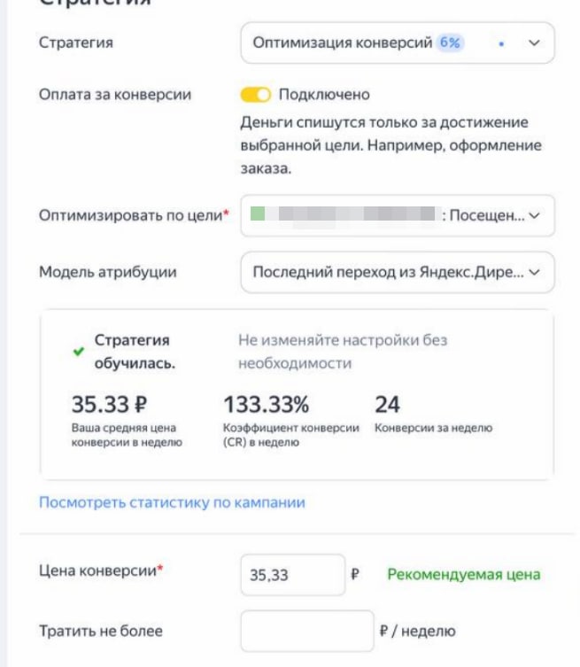 — Запустить автоматическую стратегию с оплатой за конверсию "посетил сайт", установить цену конверсии в 3 раза ниже, т.е. 35 руб.