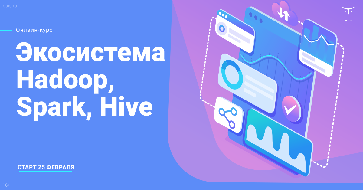 Успейте занять последние места на курсе «Экосистема Hadoop, Spark, Hive». Старт занятий 25 февраля. После обучения вы сможете писать распределенные приложения, работать с потоками данных, обрабатывать большие объемы данных и оптимизировать приложения.