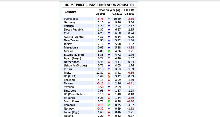 Global Property Guide, исследовав 45 мировых рынков жилья, подвел итоги 3 квартала 2019-го года. И вот они: Россия показала в годовом отношении рост цен на 3,63%, это 15-я строчка рейтинга. По сравнению со 2-м кварталом 2019-го цены выросли на 1,69%.