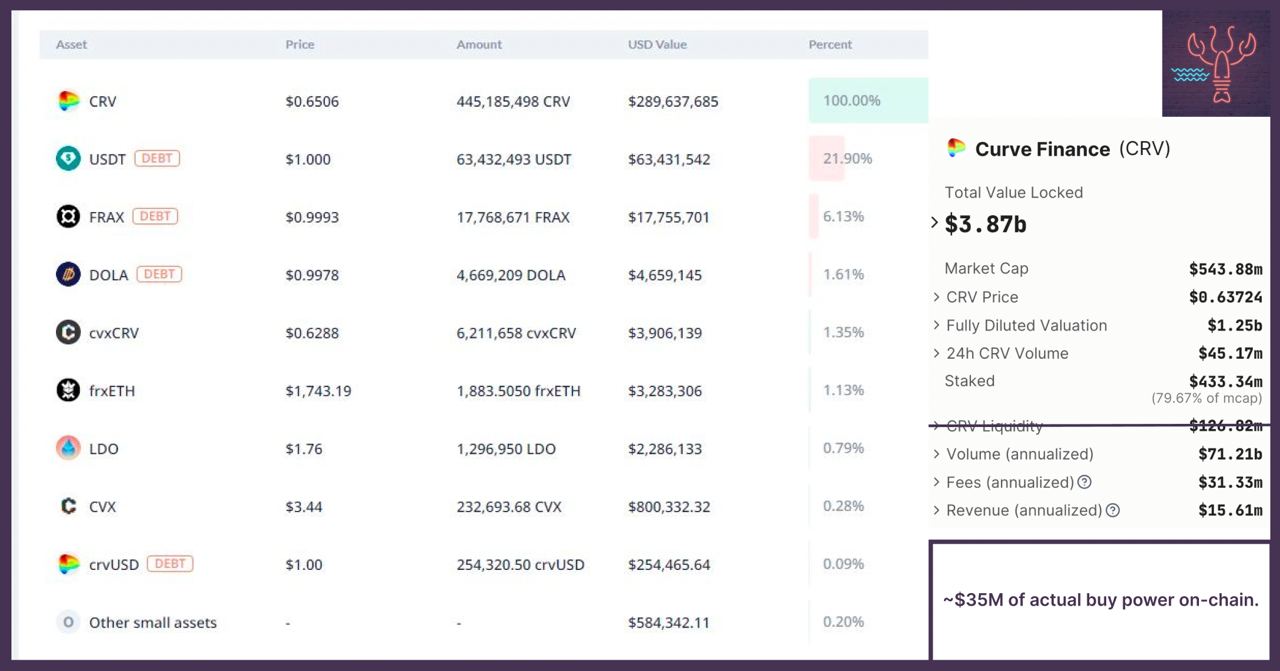 ⚫️ Fraxlend: $35M CRV collateral -> $16M debt in stables