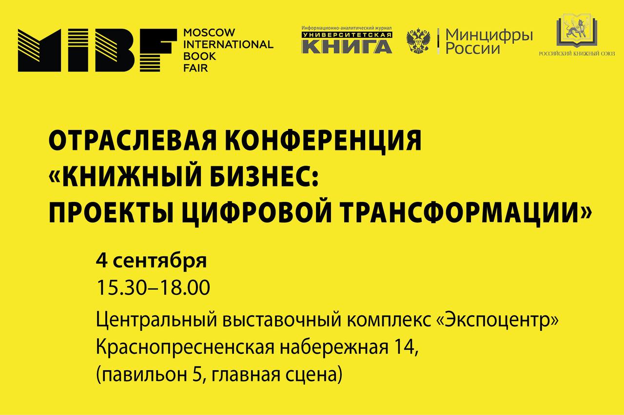 Уважаемые друзья и коллеги, приглашаем вас присоединиться к участию в отраслевой конференции «Книжный бизнес: проекты цифровой трансформации», которая состоится 4 сентября с 15.30-18.00 в рамках деловой программы 37-й Московской международной книжной ярмарки в центральном выставочном комплексе «Экспоцентр» (пав.5, Главная сцена)