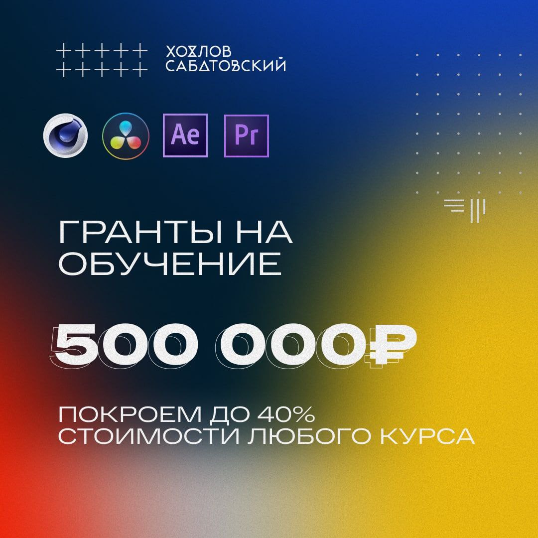 Киношкола Хохлов Сабатовский выделила 500 000 рублей на образовательные гранты! Грант может покрыть до 40% от стоимости любого курса, который ты выберешь.