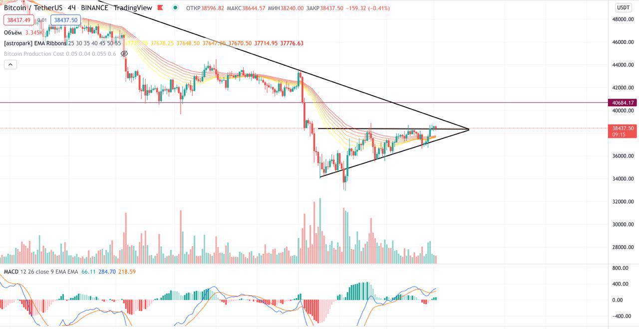 Грядет сильное движение. Только в какую из сторон? Либо пробиваем, закрепляемся выше 39.000 и идём штурмовать 41.000$.