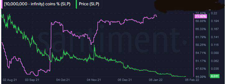 🐳Киты (держатели SLP на сумму от 100,000$) продолжают увеличивать свои запасы с ноября прошлого года.