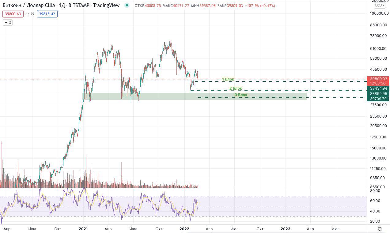 Сейчас торгуемся выше важной ценовой зоны 40000, нужно закрываться выше этой поддержки. Хоть свечи выглядят достаточно слабо нужно дать время тому чтобы на графике хотя бы 1W образовалась поддержка в районе 40000-42000.