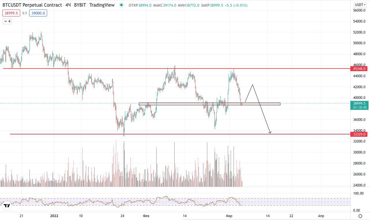 🔹Поэтому мы не исключаем сход BTC в краткосрочной перспективе в район 33к-37к, а там и до 30к недалеко, чтобы всех окончательно испугать.