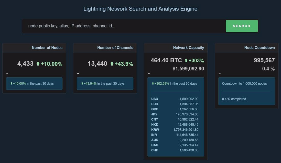 Lightning Network растёт с каждым днём. Увеличивается количество каналов, количество узлов. С огромной скоростью растёт объём сети.