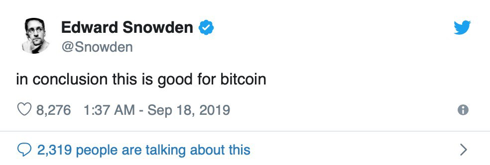 Эдвард Сноуден назвал поданный против него иск Минюста США «хорошей новостью для биткоина