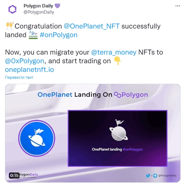 🤝Polygon сообщили об успешной миграции NFT-маркетплейса One Planet с блокчейна Terra