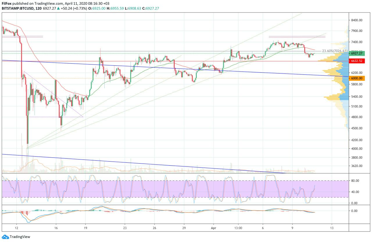 Вчера уровни поддержки смогли приостановить давление продавцов. Получится ли сегодня у покупателей перехватить инициативу? Вчера цена биткоина откатилась ниже двухчасовой EMA55. Продавцы продавили поддержку уровня 23.6% фибо (7026.60 USD) и установили дневной минимум в районе отметки 6750.00 USD. Вечером снижение приостановилось, и на очень низких объёмах цена биткоина восстановилась к уровню 6900.00 USD.