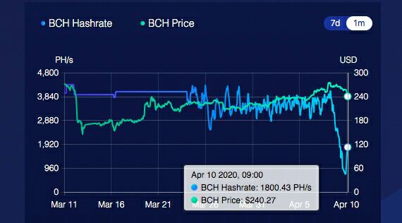 Недавний халвинг в сети Bitcoin Cash крайне негативно повлиял на хешрейт - за два дня он упал на более чем 80%.