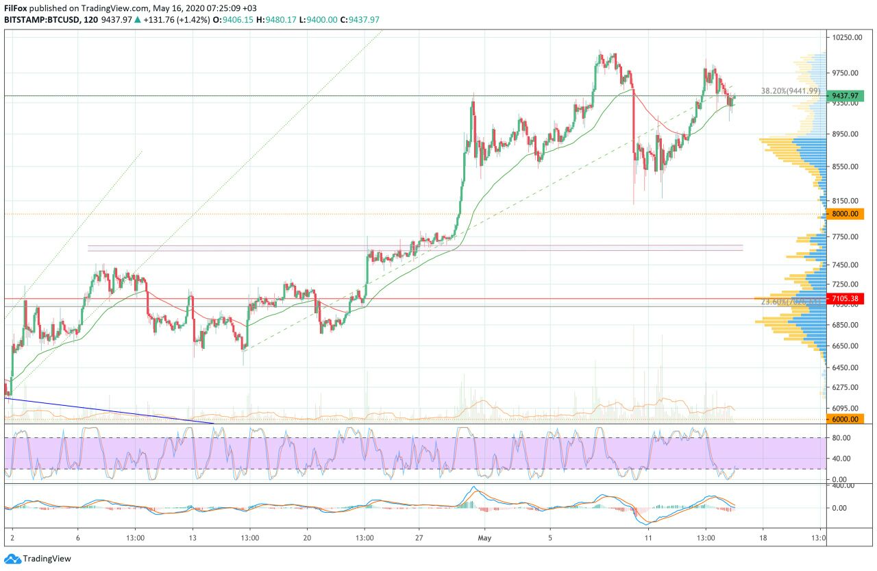 После уполовинивания награды майнерам цена первой криптовалюты выросла и сейчас биткоин торгуется на уровне $9 400. При этом рост курса первой криптовалюты сопровождался большими объемами торгов, что является позитивным признаком.