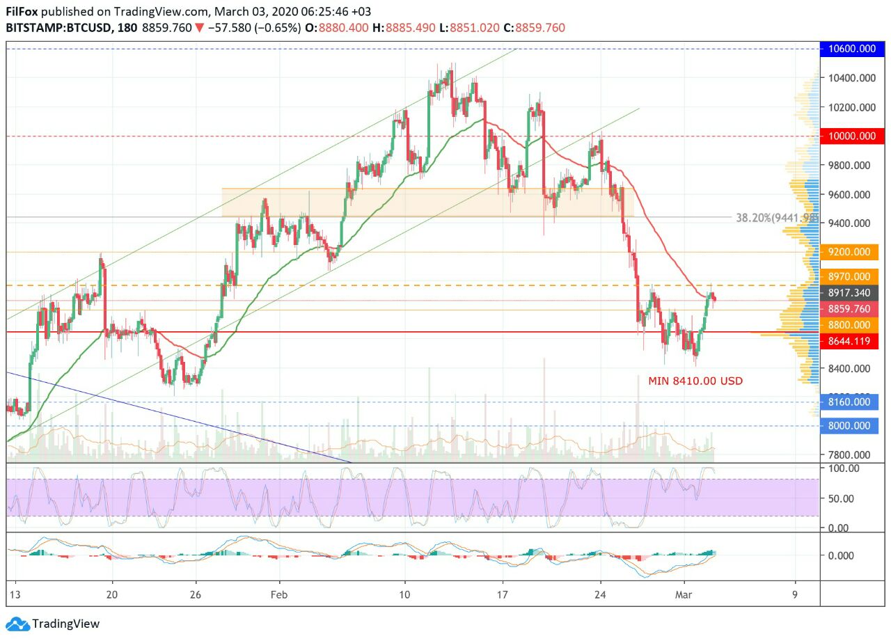 📌 Анализ криптовалютных пар BTC/USD, ETH/USD и XRP/USD на 04.03.2020